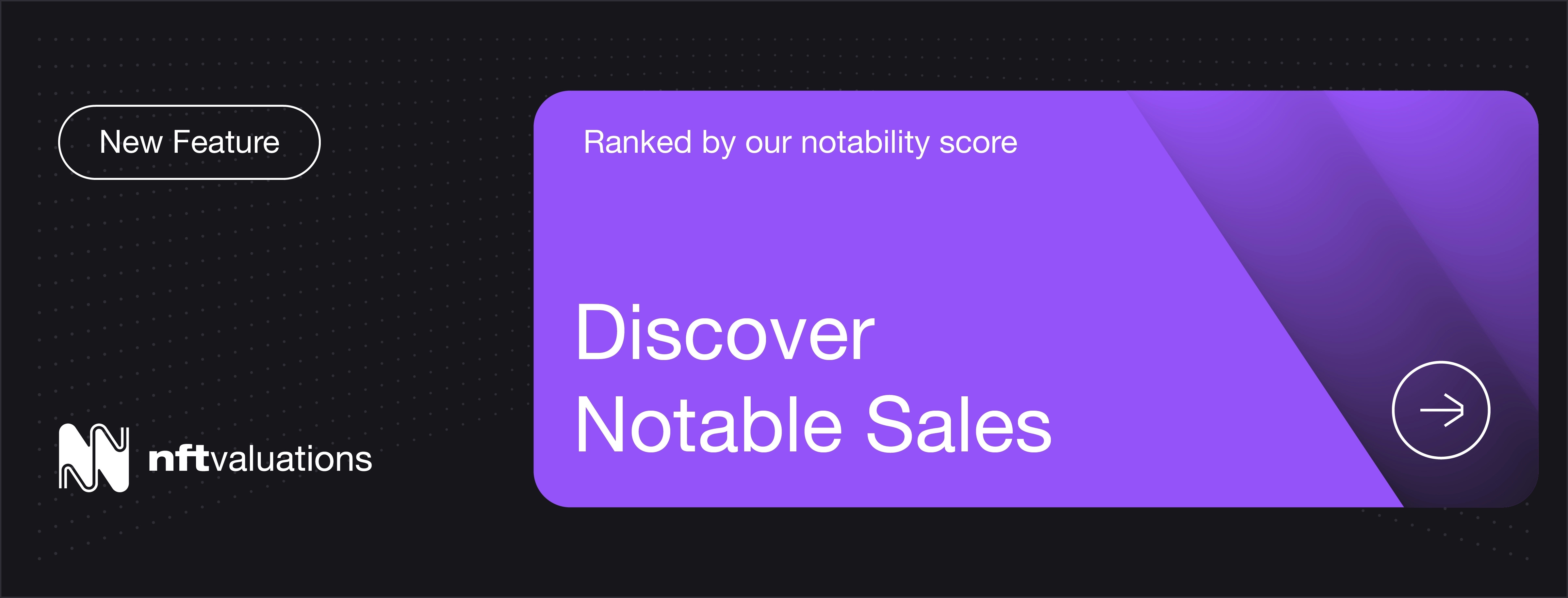 This feature displays 50 notable NFT sales from the past 7 days, ranked by our unique notability score.